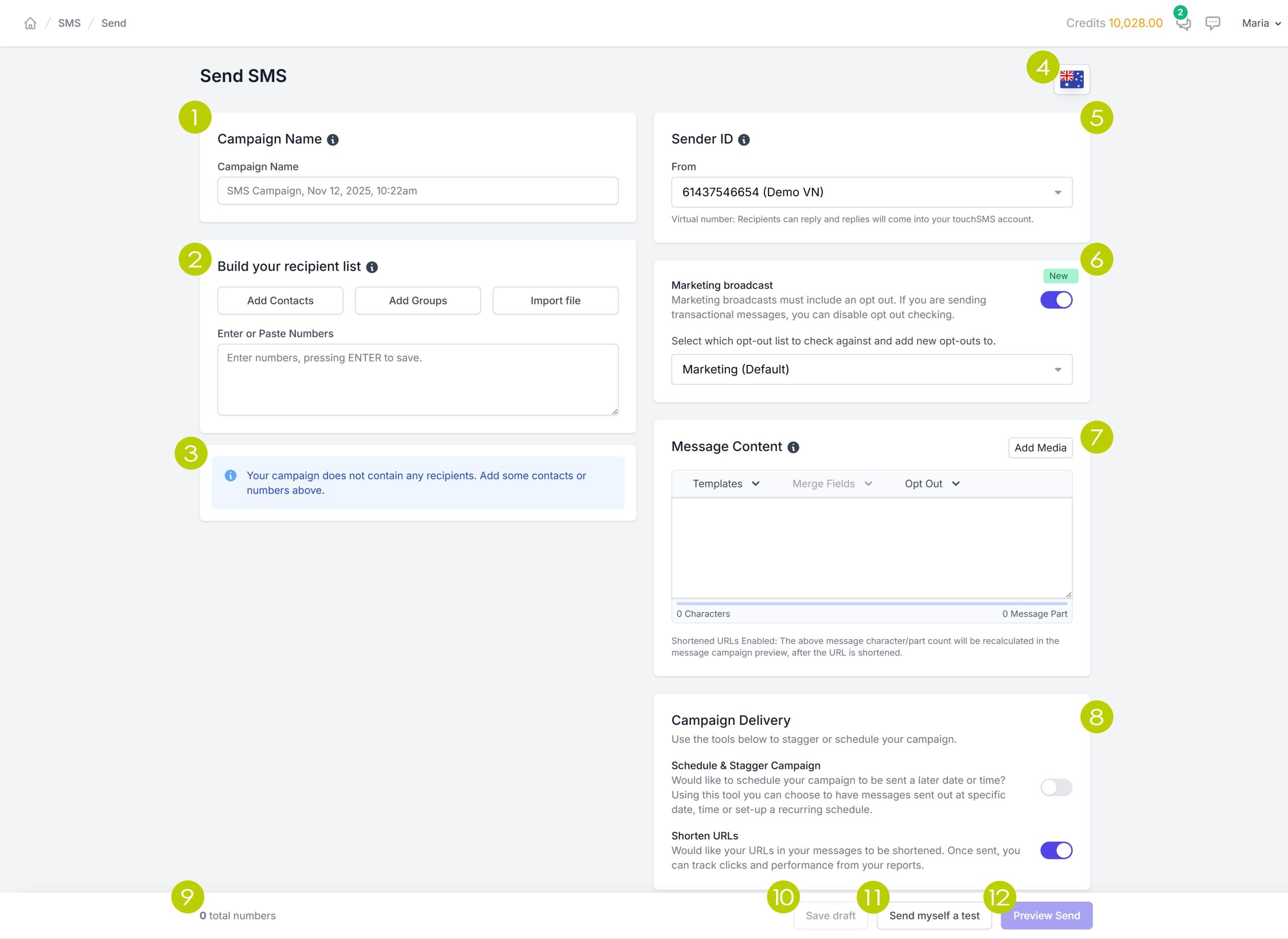 Any numbers/contacts that have already opted out from your communication (according to the selected Opt Out List), will be processed and summarised when you click Preview Campaign.